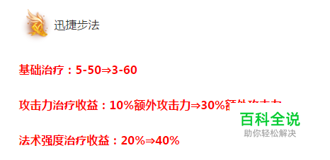 新增:如果触发【迅捷步法】的攻击造成了暴击,【迅捷步法】的治疗效果将提升,提升幅度相当于你40%暴击伤害系数 迅捷步法在7.24版本的改动中受到了加强,各项属性近乎都得到了或多或少的提升,新增的暴击增加治疗效果的BUFF极为强力。作用相当于过去的战争领主的嗜血,但却对比之下更注重移速方面的提升。