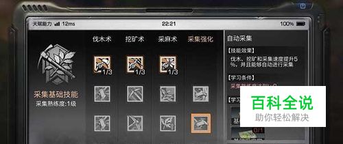 采集熟练度可以用过砍伐树木、采集矿石或者麻等资源获得,需要注意的是,当专业技能等级提升后进入低级的野外地图进行采集的话,获得的熟练会变少。