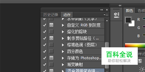 在动作对话框,点击左下角第一个”停止播放/记录“。