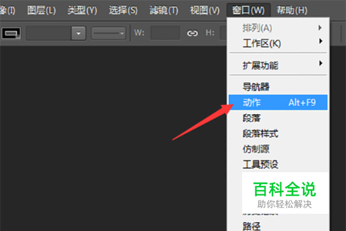 将所有要调整的图片放在同一个文件里。打开Phtoshop,在最上面的快捷栏点击”窗口“--”动作“。