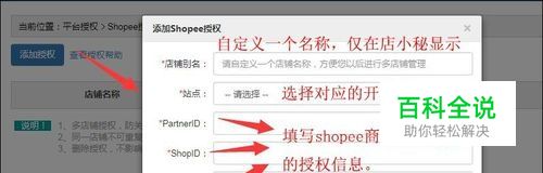 点击【添加授权】,按要求完成相关授权信息添加,并点击【授权】即可完成该shopee店铺在店小秘的授权。