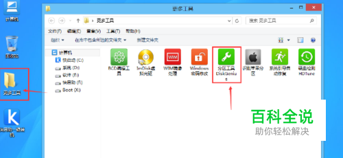 进入到win8pe防蓝屏版系统桌面后,双击桌面上的“更多工具” 文件夹,在文件夹中找到并双击“分区工具DiskGenius”图标,打开工具,如下图所示: