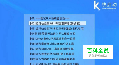 将制作好的快启动u盘启动盘插入电脑接口,开机按快捷键进入主菜单界面,选择“【02】运行快启动Win8PE防蓝屏版(新机器)”,如下图所示: