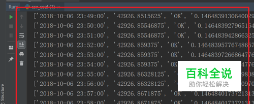 第二步运行py文件,可以看到读取了csv文件内容,这里需要注意的是如果直接将excel表格后缀名改为csv文件,读取的时候,会出现编码错误,如下图所示: