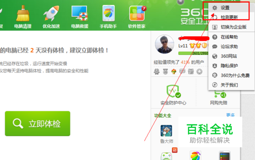 单击在下拉菜单中选择设置选项,这样就会打开360的基本设置界面。