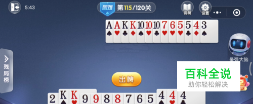 欢乐斗地主残局困难115关怎么过。欢乐斗地主残局困难第115关,这一关关键是开局要打三带二,而且在打的过程中不能把顺子拆掉。下面分享一下