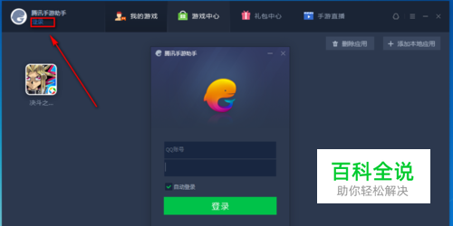 首先点击右上角的“登录”按钮,输入账号和密码登录腾讯手游助手。笔者用手游“决斗之城”双开做个示范