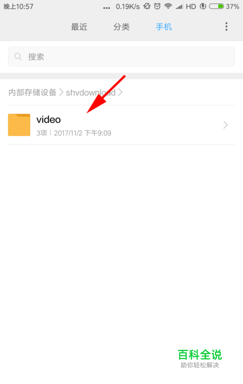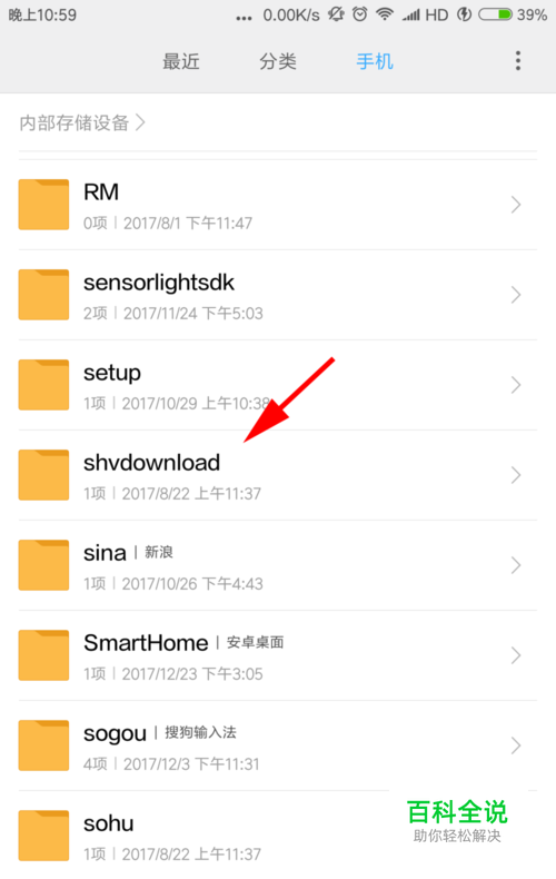 进入文件管理界面,在手机栏目点击shvdownlad文件夹