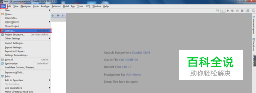 打开IDEA软件,点击File,选择settings,如下图