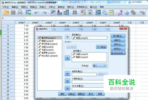 把所要分析的因变量和自变量分别选到要分析的栏目中。如果只是单纯的计算复相关系数,则只需要选择“统计量”按钮,无需选择别的方法,操作见图片。