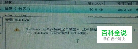 安装系统提示:选中的磁盘具有MBR分区表。
