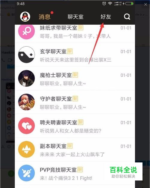 进入聊天界面以后点击箭头所指的“好友”。