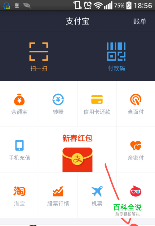 首先进入你的支付宝,使用的你的第一个支付宝登录。然后点击右下角“财富”。
