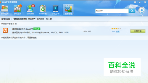 打开金山卫士或者360安全卫士的软件管理功能。 搜索:XMAPP