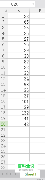 先选择第一个工作表,如图工作表sheet1,选中A1-A20区域,(sheet2是第二个工作表)