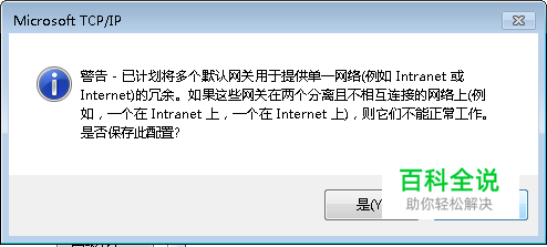 现在许多单位,为了保证数据的安全和项目的保密,使用的台式机大多都配置了双网卡(带无线功能的笔记本就是双网卡),一个网卡连接公司内部局域网,一个网卡连接互联网,但是我们经常在配置网络地址的时候,提示“因特网将多个网关用于提供单一网络.......”,即不让配置两个网关,如下图所示。有时我们必须需要配置两个网关,才能方便工作,改怎么办呢?下面我介绍一种方法。
