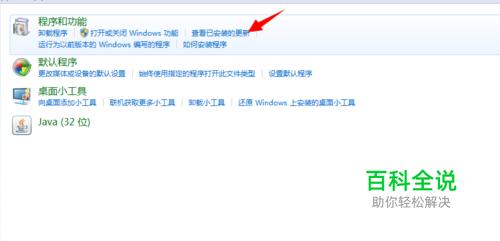 进入程序界面,在 【程序和功能栏】,点击 【查看已安装更新】
