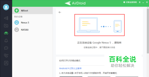 免root操作步骤: 3、将手机与电脑用usb线连接,在电脑端点击AirMirror→免root→连接。此时就会开始连接手机
