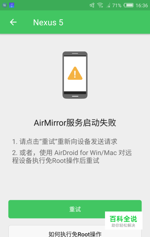 一般使用AirMirror远程连接AirDoird的时候,会提示AirMirror启动失败。主要被控端手机(装有AirDroid)没有root