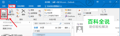 打开Outlook,然后点击开始中的新建电子邮件,如图所示操作。