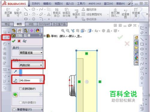 确定,如图。最后再建立一个草图,画两根中心线(此草图一定要建立,否则成型的时候无法用),如图所示