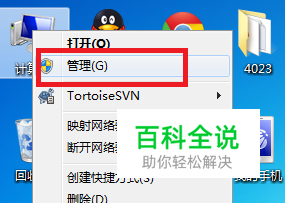 在电脑系统的桌面上找到计算机,然后用鼠标移动选择计算机并右键,在弹出的菜单栏中选择-->管理,如图所示