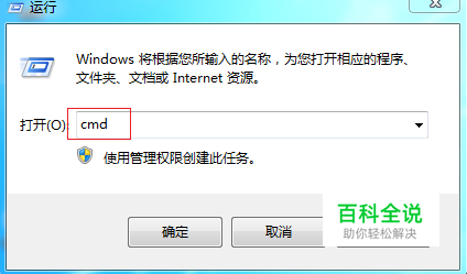 在电脑开始菜单中打开“运行”,在运行栏中输入“cmd”。