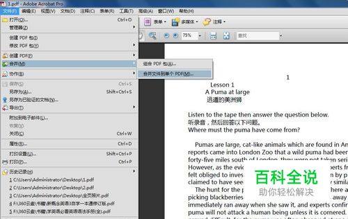 点击文件>合并>合并到单个PDF