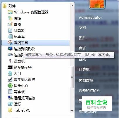 在桌面类我们可以采用Windows自带的截图工具, 打开开始菜单——所有程序——附件——截图工具