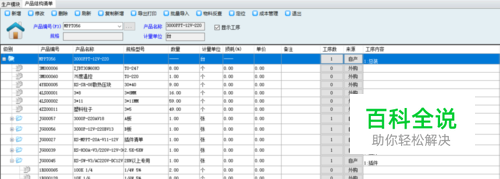 做好A的BOM后,再做B的BOM,保存后在软件中,是这样显示的。 注意:产品编号后的选择按钮,打开显示的是当前所有已经做了BOM表的商品资料,如果没有做BOM表的话这里不会显示。