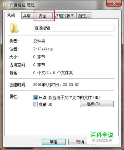 第一步右键点击我们需要修改权限的文件,选择“属性”,进去点击“安全”,如下图所示: