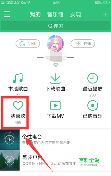 首先打开手机上的“qq音乐”,登陆到自己的qq账号后,在qq音乐的页面,点击“我喜欢”。