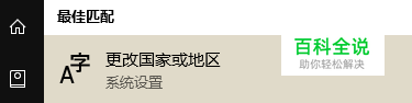在小娜中搜索地区,最佳匹配中会显示【更改国家或地区】的系统设置,双击打开。