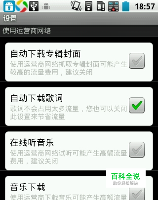 可以连接网络下载歌词和歌曲封面,当然也可以关闭该功能,避免流量浪费。
