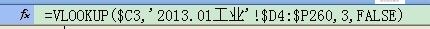 =VLOOKUP($C3,'2013.01工业'!$D4:$P260,3,FALSE)