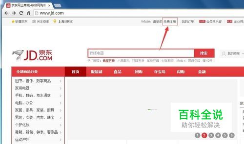 注册京东 首先要注册个账号,登录京东的网站后,点击“免费注册”进行注册。 注册的时候用验证手机或者验证邮箱都行,反正都可以绑定的。