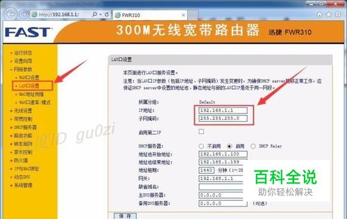 在这个教程里,你只要知道A路由的密码就可以了 连接宽带的设置,跟着向导做就OK了具体设置这里就不谈了. 对A路由的 DNS进行设置 这里只以FWR310为例. 登陆后,打开 网络参数-LAN口设置 默认情况下可以看到如下图的信息