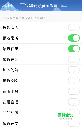 兴趣爱好展示设置,可以展示你最近在干什么,例如最近常听、最近常玩、最近k歌等等,具体怎么设置,请看下面的详细步骤