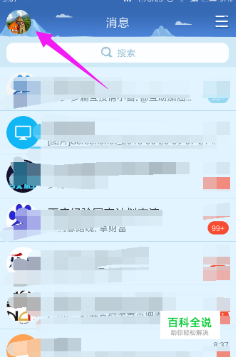然后,进入QQ,左上角的头像,向右滑出列表选项,再次点击击头像,如图所示