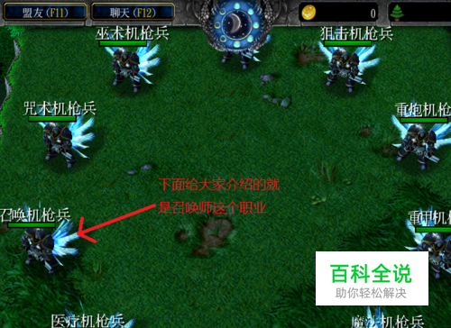 当开始游戏时第一项肯定是选人物了,人物职业到时不少我就不一一说了。大概说几个常用的。一般一定会有医生这个职业,因为基本不可能整局下来不死人的。必须要靠医生来救。还有魔法师,重机枪,召唤师等职业。 这里我就教大家如何用召唤师这个职业。那就先选择召唤师吧。