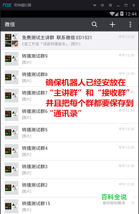确保我们的转播机器人都安放到所有的“主讲群”和“转播群”,并且把群都“保存到通讯录”