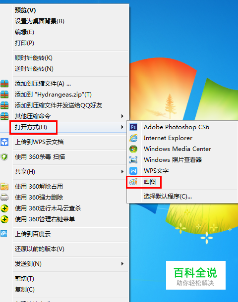 右击一下你想放大或缩小的一张图片,打开方式选择“画图”。