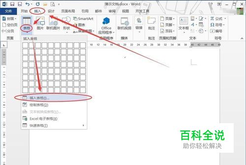 进入【插入】-【表格】,在下拉菜单中点击【插入表格】新建表格。