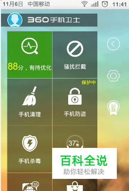 首先需要在手机上安装360手机卫士,如果手机上已安装过了那更好了,安装过程简单,就不介绍了。