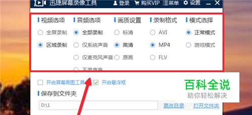 安装好后,我们打开屏幕录像工具,设置我们录制视频时候需要用到的一些相关参数,主要是围绕着“视频选项、音频选项、画质设置、录制格式和模式选择”这五项进行设置。