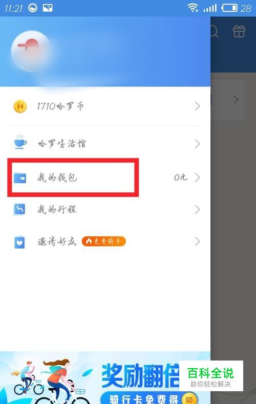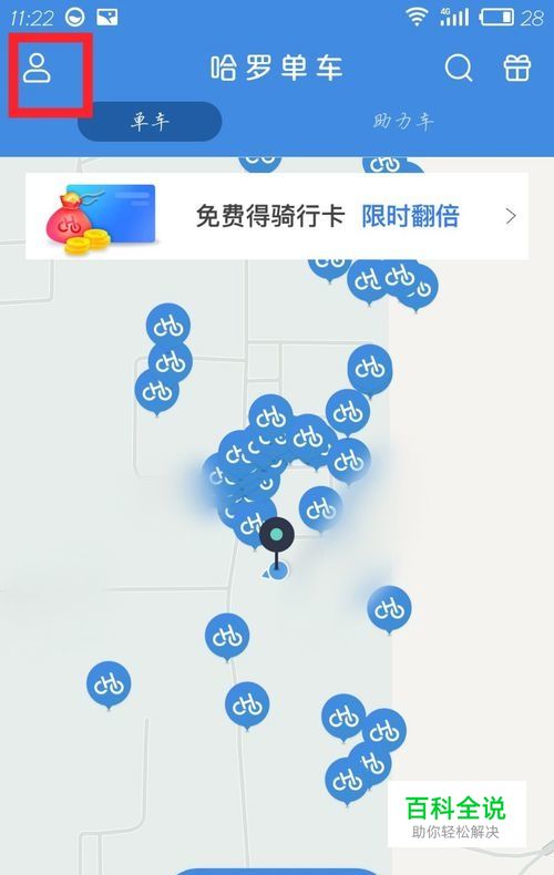 打开哈罗单车,点击左上角
