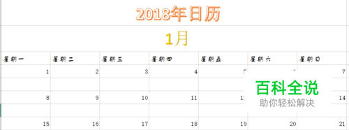 在这里,我们以2018年一月日历为例子。2018年1月1日为周一。