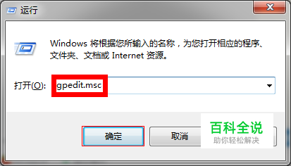 用【Win+R】组合键命令打开【运行】界面,输入【gpedit.msc】,按【回车键】或【鼠标左键】单击【确定】按钮;