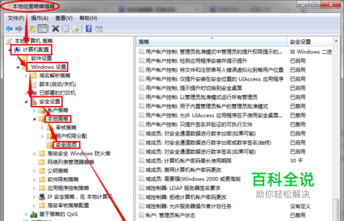 在弹出的【本地组策略编辑器】对话框中,依次【鼠标左键】点击打开:【计算机配置】—>【windows设置】—>【安全设置】—>【本地策略】—>【安全选项】—>找到【账户:重命名系统管理员账户 Administrator】选项卡;