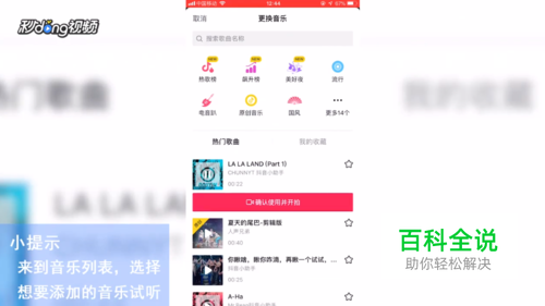 选择想要添加的音乐试听,选择后点击“使用”并开拍。